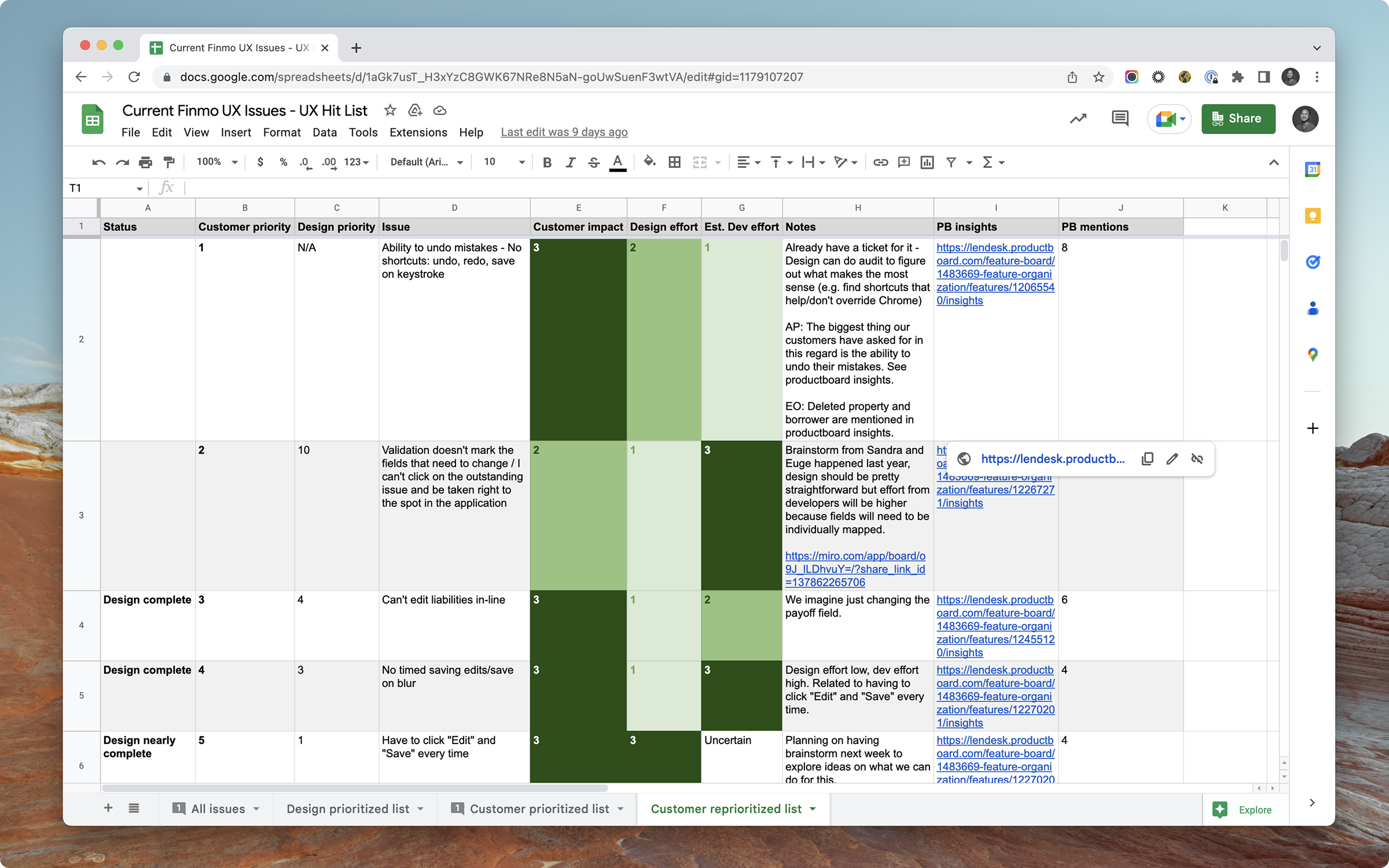 We established a single source of truth for UX pain across Finmo, aligning Sales, Product, and Engineering around the same problems.