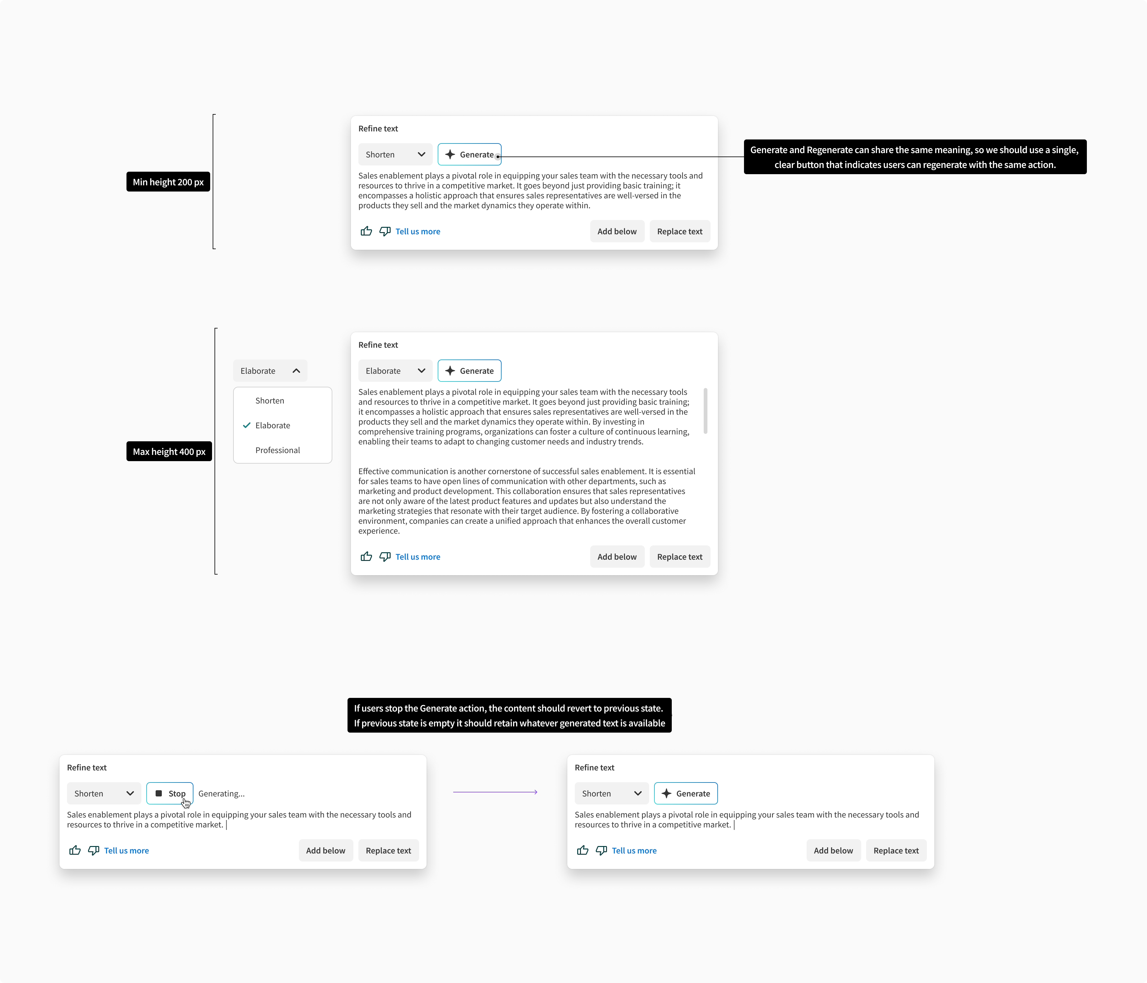 We began by auditing how industry leaders like Notion, Canva, and Google handle the transition from text generation to refinement.