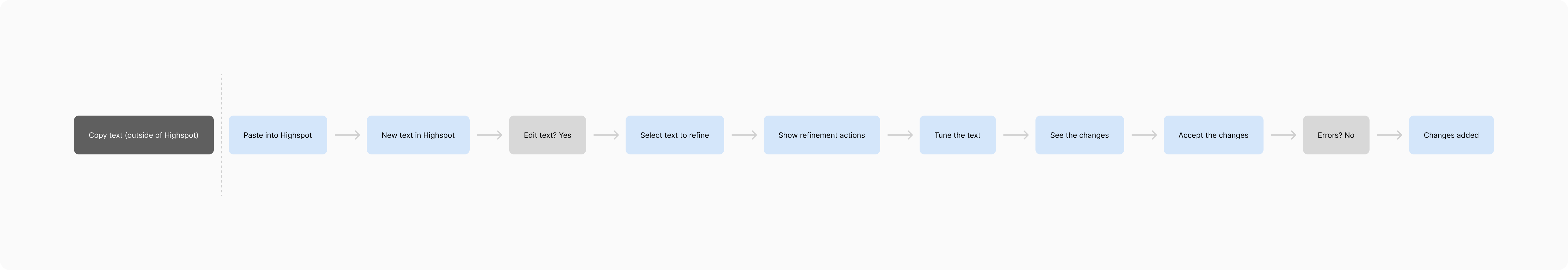 - Refinement over generation: We made a deliberate bet to prioritize one-click refinements. We recognized that Highspot wins not by competing with ChatGPT on broad creativity, but by helping users polish existing copy directly where it lives
